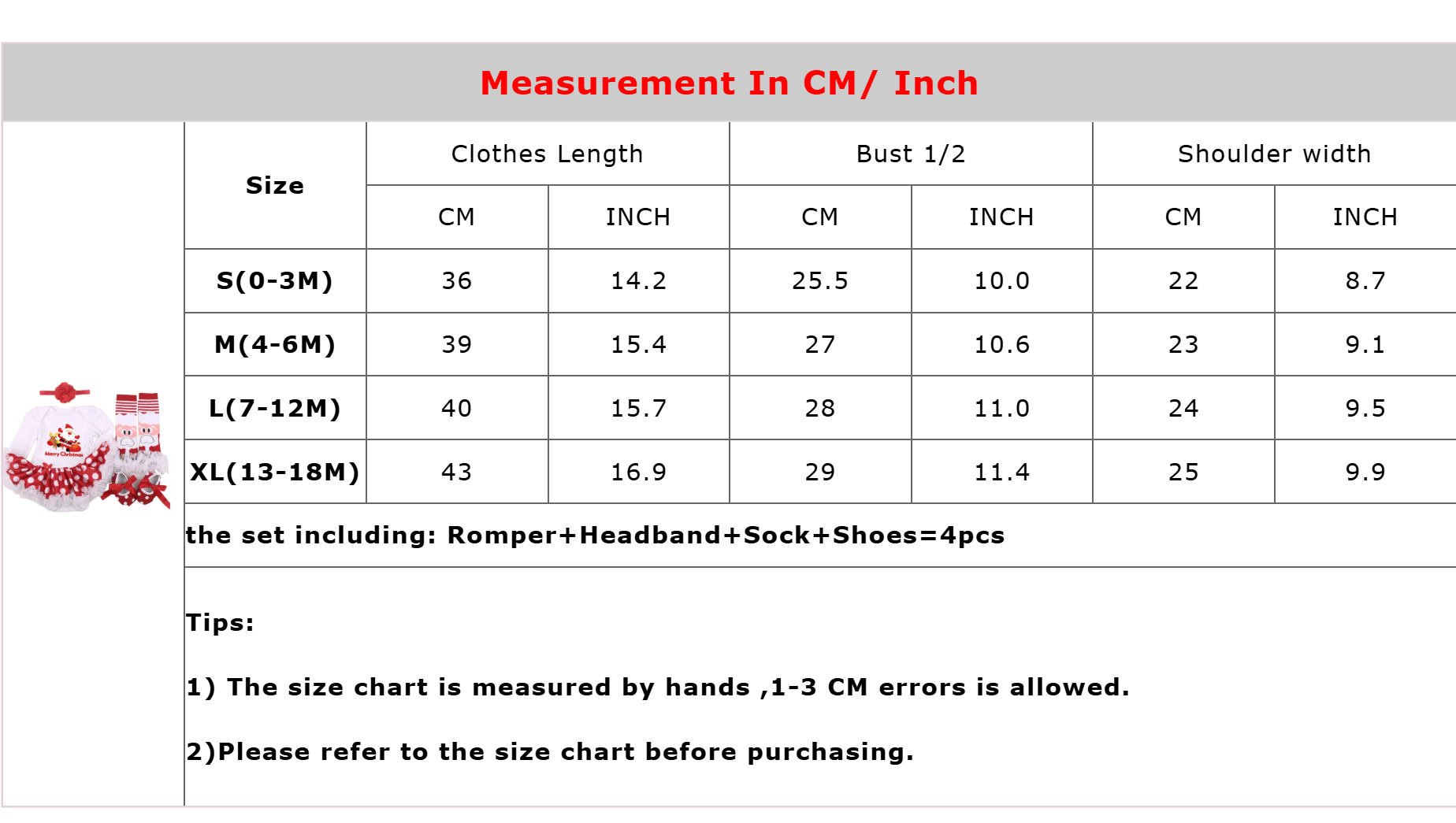 | the set including: Romper+Headband+Sock+Shoes=4pcs | |||||||
