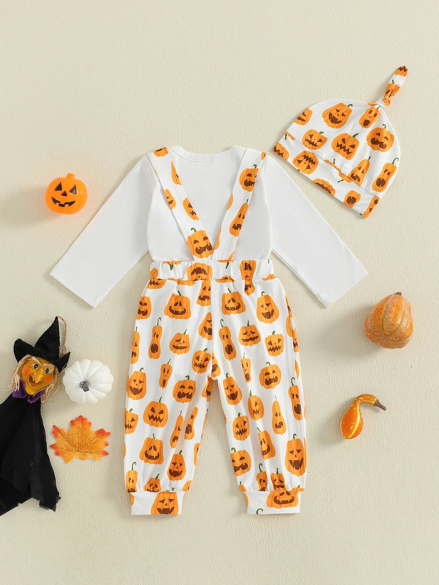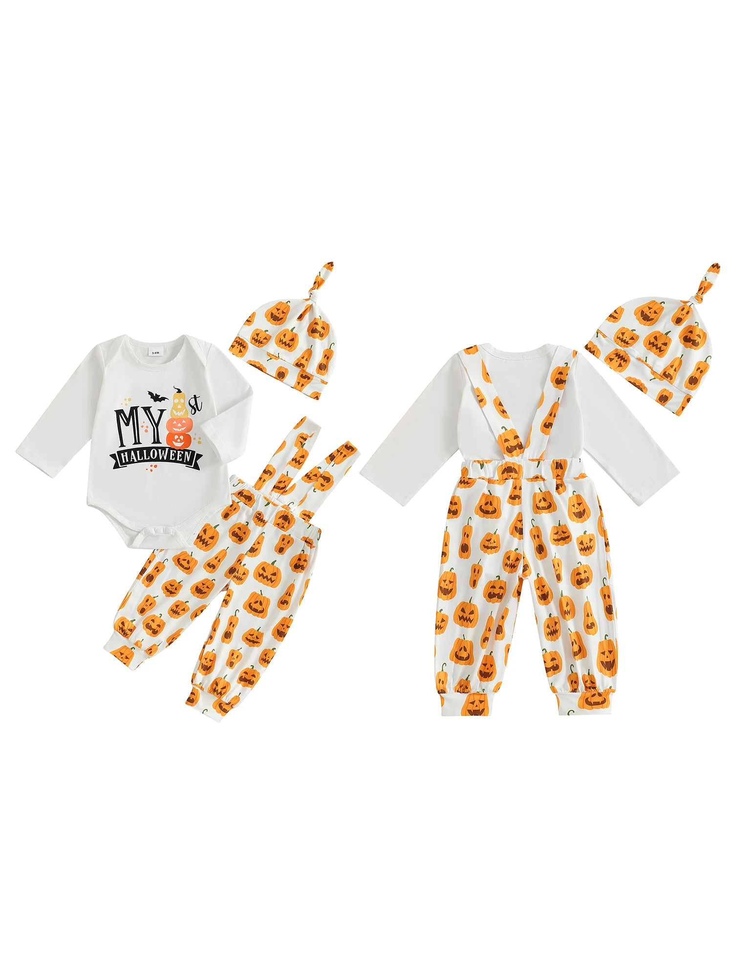 Dress your little one in spooky-cute style with this 3-piece Halloween set: a soft long-sleeve romper, pumpkin print overalls, and a cozy beanie. Made from gentle, breathable fabric for all-day comfort – perfect for trick-or-treating, playtime, or capturing adorable holiday photos.